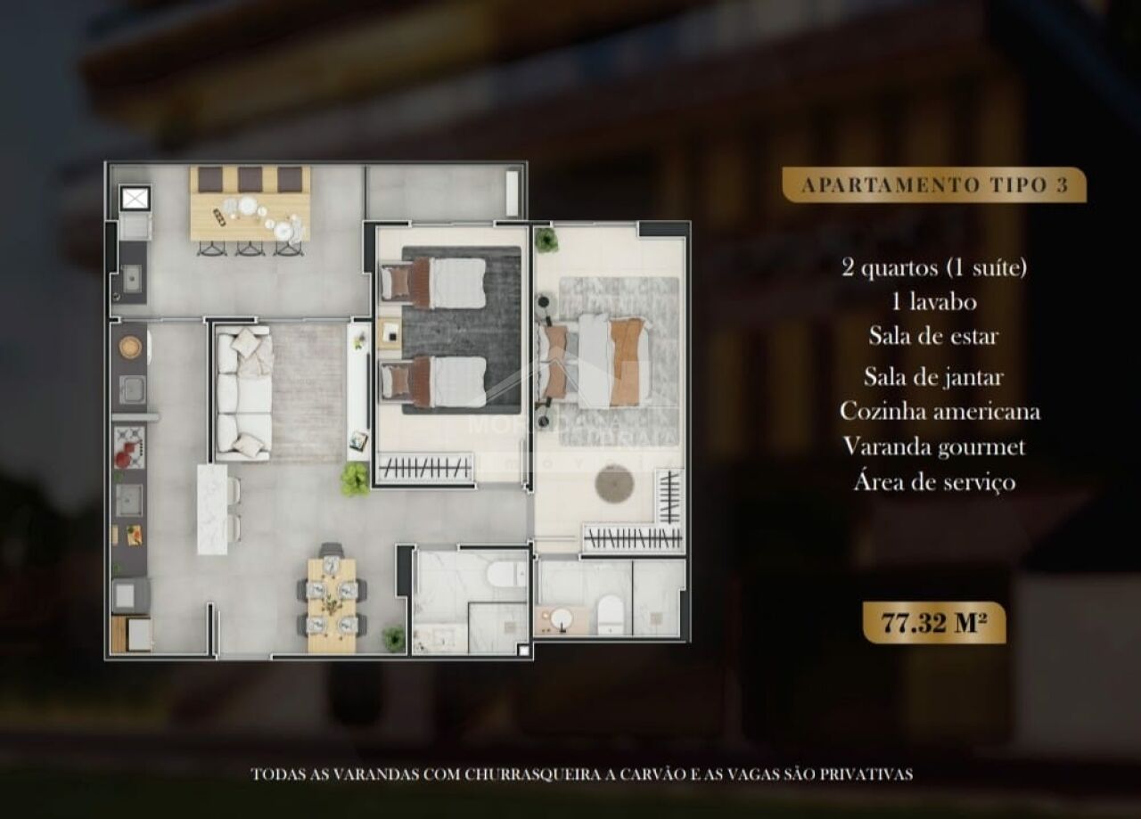 Apartamento à venda - BOQUEIRÃO com 86 m²